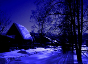 Погода преотличная, снег уже выпал, под ногами поскрипывает, луна светит, освещая всё вокруг, дыма над деревней почти нет. Люди уже печи протопили и закрыли заслонки, чтобы ночью тепло не выдуло. В окнах ни огонька. Люди в деревне спать рано ложатся, но и рано встают. Даже собаки не лают. Ти-ши-на и мы.