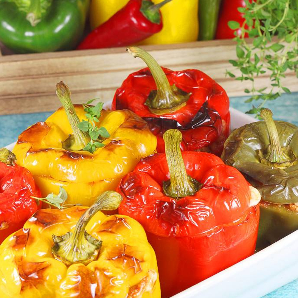 Порции: 6 больших перцев Калорийность: 430 в 1 фаршированном перце Диета: безглютеновая
