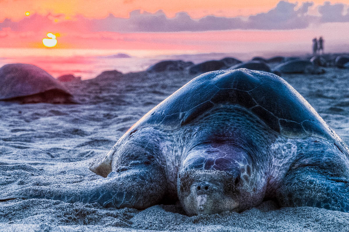 Величественный выход оливковых черепах из моря заставляет затаить дыхание. Они похожи на шевелящиеся серые камни, которые заняли всю протяженность пляжа.