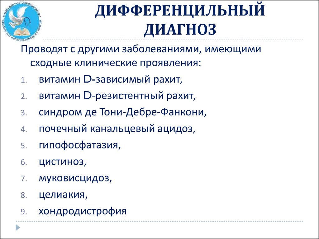 Все формы почечного рахита лечат педиатры, ортопеды должны их знать потому, что в большинстве случаев первое обследование производит ортопед.