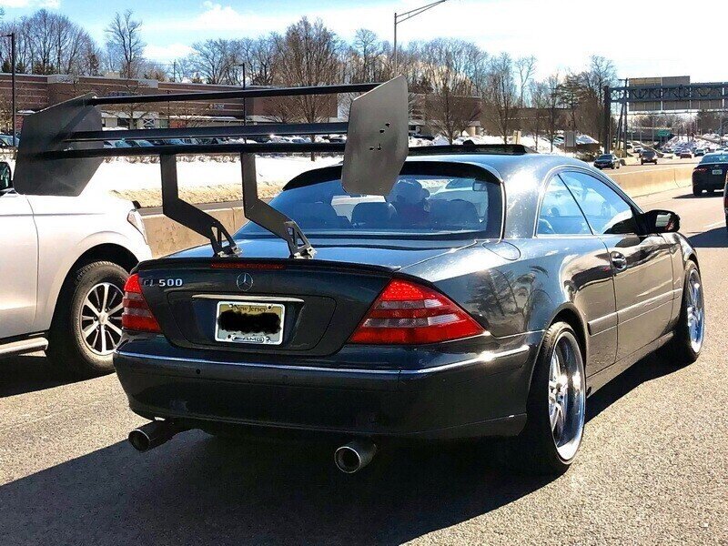 Первым сегодня будет вот этот Mercedes-Benz CL500, который сам по себе выглядит достаточно неплохо, если бы не огромное антикрыло на багажнике.