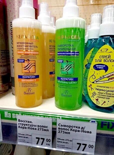 Желтая бутылочка, с кератином. В составе он есть, да. Но для моих волос, очень, очень тонких и пористых, все остальные ингредиенты оказались слишком тяжелыми.