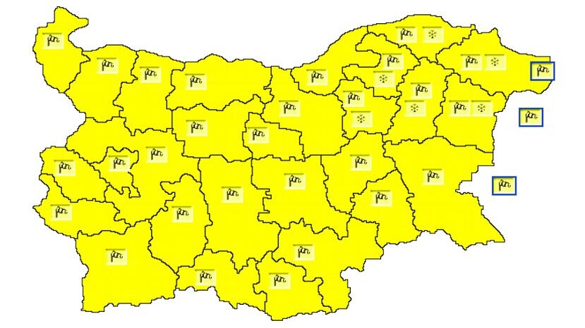 На сегодня, 12 февраля, из-за сильного ветра в 22 областях Болгарии объявлен „желтый“ уровень метеорологической опасности, а в 6 – предупреждение в силе из-за сильного ветра и снега, показывают данные Национального института по метеорологии и гидрологии...Из-за сильного ветра в 22 областях Болгарии объявлен „желтый“ уровень опасности