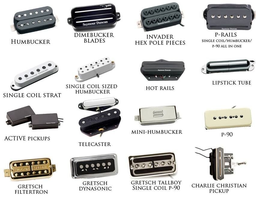 Все они разрабатывались под определенные модели гитар, имеют разные технические данные, но конструктивно очень похожи. У всех в основе — одна катушка и магнит, либо один общий, иногда с магнитопроводами, либо под каждую струну — отдельный.