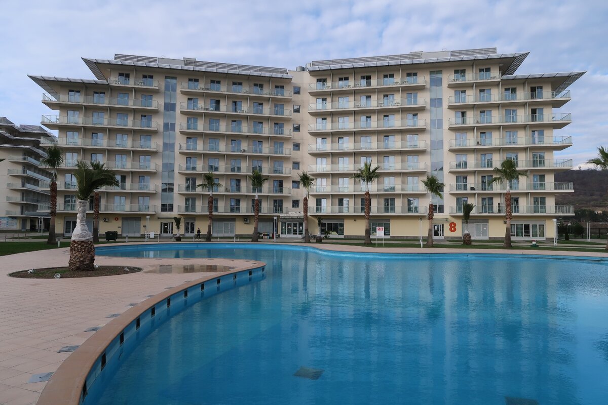 Шесть лет назад у меня появилась первая внучка, а когда ей было два годика мы в феврале первый раз полетели с ней и ее родителями в Сочи. Причем цели у нас с внучкой и у ее родителей были полностью противоположными. Родители, любители горнолыжных видов спорта, стремились в горы, на Красную поляну. Но при этом они хотели, чтобы ребенок дышал морским воздухом и был в тепле на солнышке. Поэтому мы выбрали для проживания отель "Сочи парк", расположенный на Имеретинской низменности в районе Олимпийского парка.