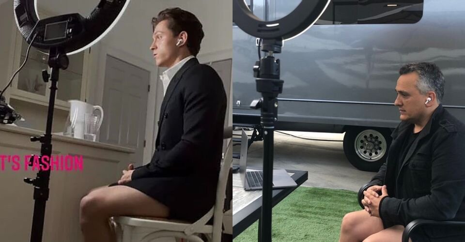 Режиссеры Мстителей Джо и Энтони Руссо подшучивают над звездой Томом Холландом после того, как он рассказал что давал интервью без штанов.Ранее на этой неделе Холланд сообщил в социальных сетях, что проводил виртуальные интервью для журнала Черри без штанов.Руссо не могли удержаться, и не подшутить над Томом, и вскоре выложили фотографию Джо, сидящего перед ноутбуком, как Том на интервью, без