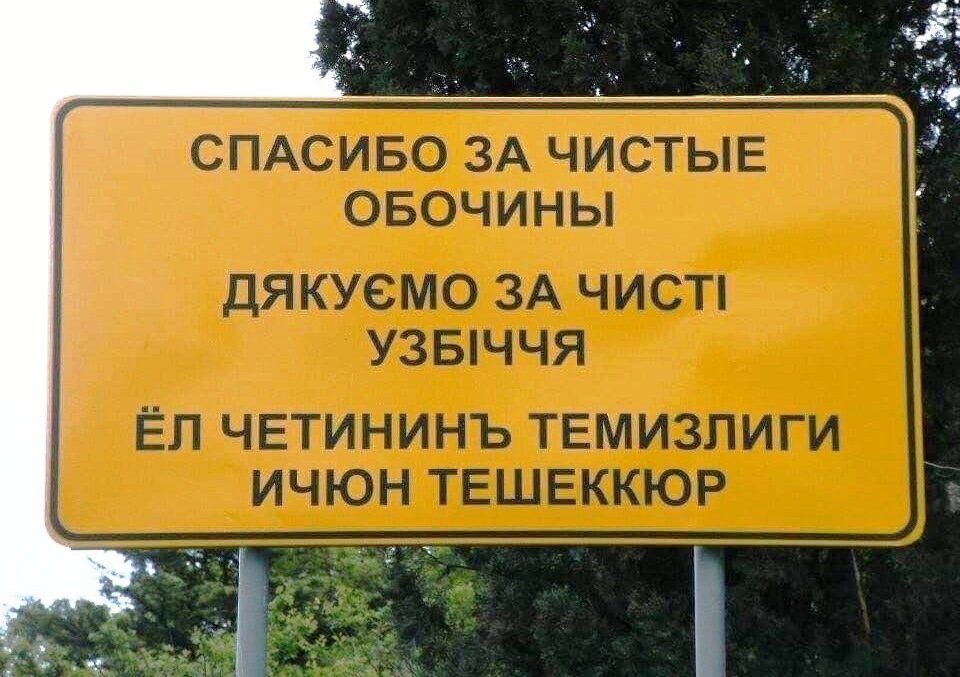 По сей день думаю, интересно, если бы Кучму сменил единомышленник, продолживший его новации, а не Витя — пасечник, а был бы майдан? Может и был, а может было нечто совершенно другое, не такое дебильное. Хотя с другой стороны, какая мне теперь разница. Крым это уже Россия и мову в школах не учат. Чиновники от минобразования пытались организовать обучение, да так и не смогли набрать детей не то, чтобы на школу, а даже на украинский класс. То ли майдауны родителей напугали, то ли не хотят светиться как украинцы, то ли оно им просто не надо. В Крыму официально по сей день три языка; русский, крымско-татарский и украинский. Тем более, что очень часто на наших просторах можно услышать украинскую речь. Однако, не хотят украинцы учить своих детей родному языку. А что это значит? Только то, что будущее своё и будущее своих детей они связывают только с Россией! И никак иначе.