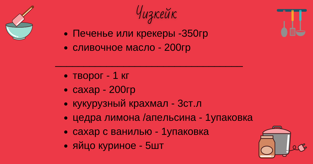 Чизке́йк — блюдо европейской и американской кухни, представляющее собой сыро содержащий десерт от творожной запеканки до суфле. Хотя данное блюдо и называют тортом или пирогом, чизкейк не бисквитный десерт: его основанием чаще всего являются толчёное песочное печенье.