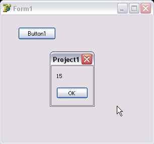 Всё, запускаем программу (F9 для тех, кто подзабыл) и нажимаем на кнопку. Если всё верно, то мы увидим число 15, которое является средним арифметическим для чисел 10 и 20: