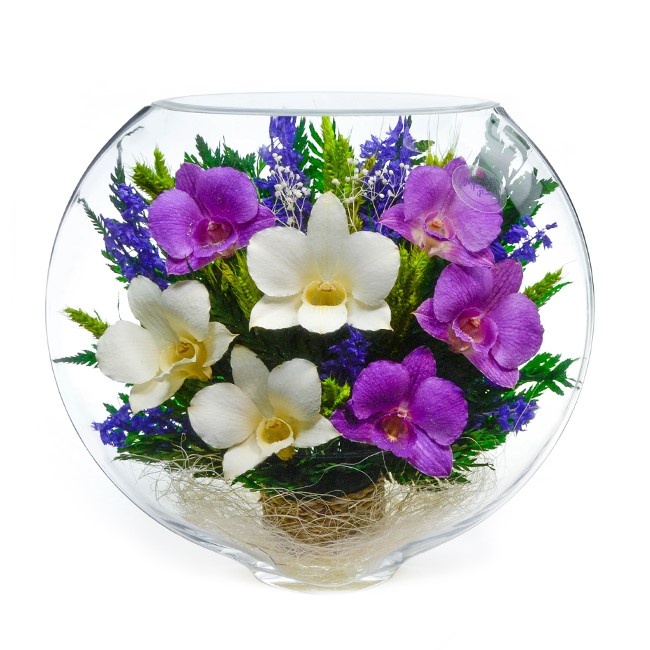 Добрый день! Грядут самые цветочные праздники. На сайте магазина wildberries много красивых цветочных композиций. Цветочные композиции помещены в стеклянные вазы, запаянные со всех сторон. Композиции состоят из натуральных цветов, обезвоженных по специальной технологии, которая даёт возможность цветам сохранять свой свежий вид на несколько лет, в среднем 6-8 лет.