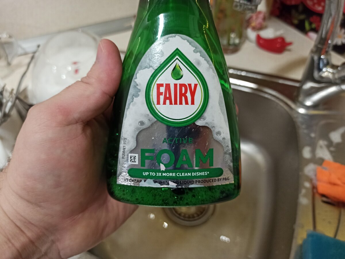Дома сели обедать, после чего в мойке собралась посуда, жена спешила на работу, поэтому, посуду помыл я. Включил воду, достал новое моющее и начал выдавливать. Моему удивлению не было предела, когда из дозатора, за места жидкого моющего, появилась густая и обильная пена!