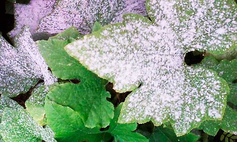 Болезнь легко узнать по серовато-белому налету или по характерным темно-коричневым шарикам на поверхности листьев и молодых стеблей. Со временем налет становится плотнее, а затем буреет.