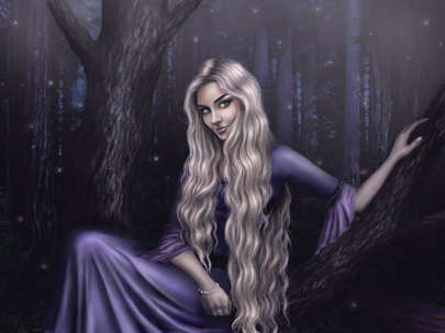 Вот и озеро уже показалось. Но, вдруг одна из темноволосых ведьм, быстро оказалась внизу, преградив влюбленным дорогу.