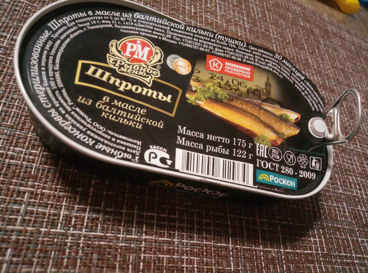 Лежала у меня в холодильнике баночка шпрот из "Светофора". Сегодня решила её открыть и "заценить". Ну во-первых, банка с удобным ключом. Во- вторых состав нормальный.
