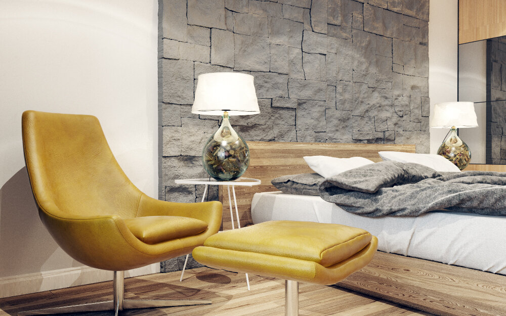 Дизайн интерьера данной квартиры разрабатывался для мужчины с учетом его предпочтений: просторная спальня с камином и телевизором. Ничего лишнего, много света и простора. Дизайн выполнен с учетом мужских потребностей, где например, спальня похожа на уютную пещеру. Кухня в стиле минимализм без лишних отвлекающих и мешающих элементов.