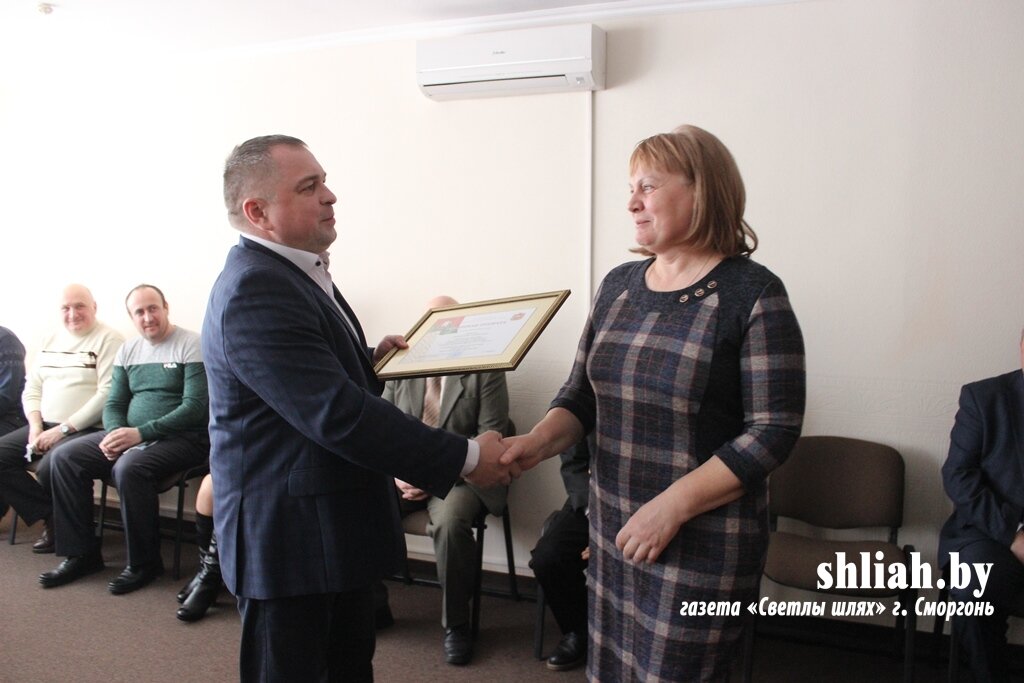 Строительно-монтажному тресту №41 недавно исполнилось 35 лет. К юбилейной дате был проведен ряд торжественных мероприятий. Но они не закончились. Сегодня, 19 февраля, в трест приехали заместитель председателя райисполкома Дмитрий Станкевич, который курирует строительную сферу, и председатель районного Совета депутатов Сергей Куденьчук с наградами.