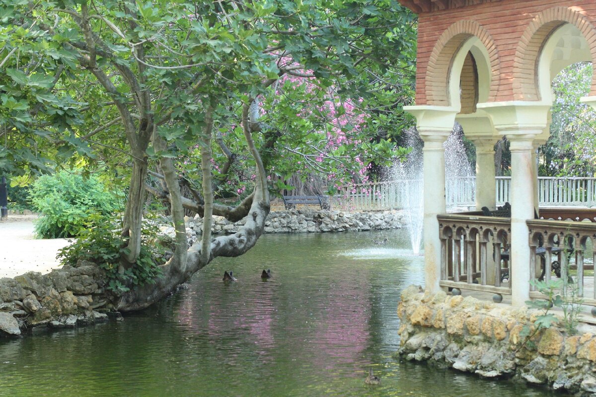 Большой след в архитектуре оставили арабы. Которые в разное время владели этим городом. Беседка на берегу водоёма точно передаёт мавританский колорит, использование в качестве озеленения фигового дерева, делает сад не только красивым, но и полезным.