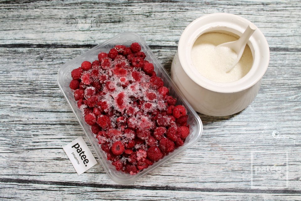 Малину разморозьте, лучше всего это сделать без подогрева, даже в СВЧ - на воздухе или на нижней полке холодильника.