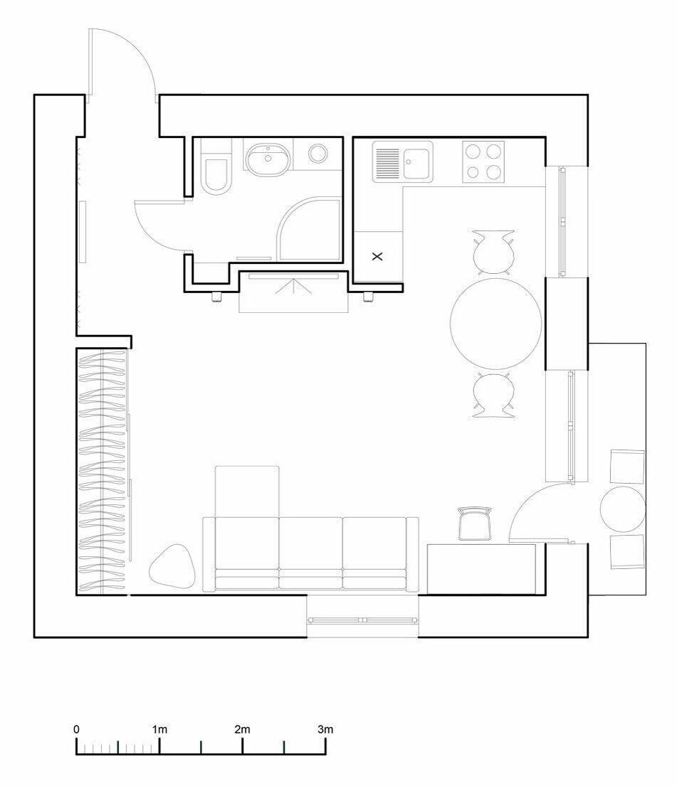 Хозяин однокомнатной квартиры, о которой мы рассказываем, одинокий студент, получивший ее по наследству и подзаработавший денег на летних каникулах в Европе. Он не собирался жить с замшелыми полами и плинтусами, и готовить еду на кухоньке, где с трудом можно поставить две ступни, если туда впихнули холодильник.
