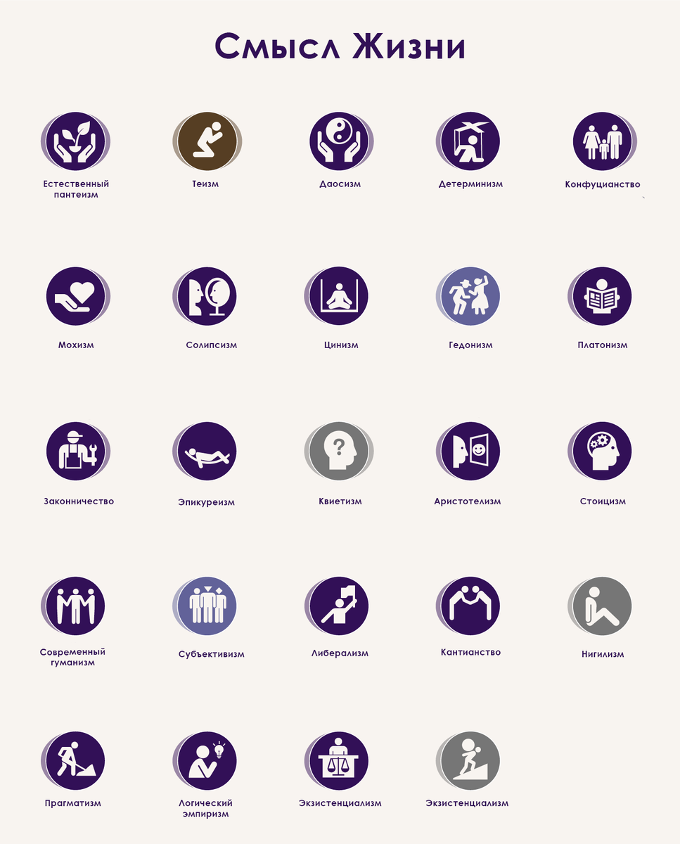 Можно ли одним словом передать смысл жизни? Возможно, это наивно, но нет ничего плохого в том, чтобы получить простой ответ на, казалось бы, простой вопрос: зачем жить? Здесь мы визуализировали наиболее известные философии, которые занимались этим вопросом за последние 5000 лет.