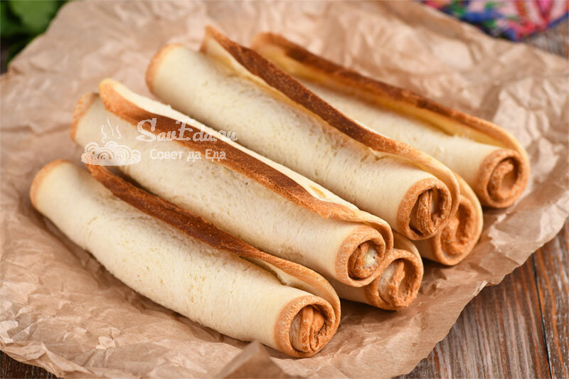 Такие трубочки готовлю не только с творогом. Для начинки подойдут любые продукты, которые есть в холодильнике: колбаса, готовое мясо, сыр или обжаренные грибы. Такие хрустящие трубочки – отличный завтрак или перекус. А готовятся они очень просто и быстро.