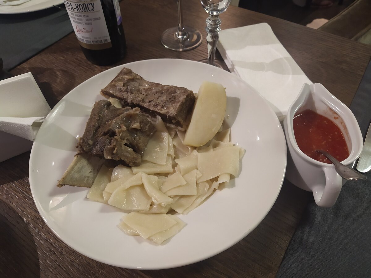 Из того что не понравилось: хинкал из кукурузной муки. Я подозреваю, что это был не хинкал, а халпама (я не профи, поэтому могу ошибаться), какой-то он был безвкусный и даже соус никак не спасал...