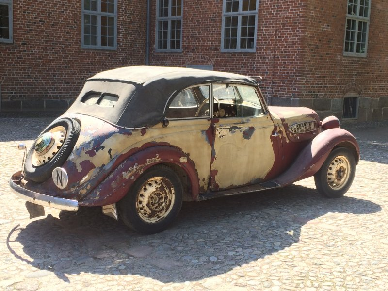 После того как машину экспроприировали она оказалась в Норвегии, где ее не мудрствуя лукаво покрасили в новый цвет, чтобы скрыть фашистское прошлое.