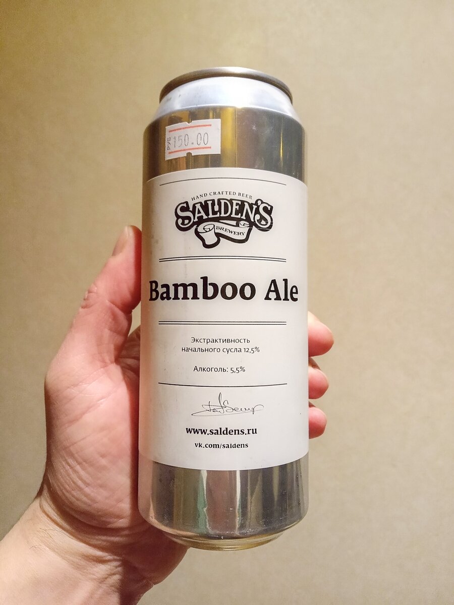 Как, наверное, все догадались, сегодня будет дегустация очередного напитка от очень плодовитой пивоварни Salden's. На этот раз это бамбуковый эль... ...который на самом деле не эль, а "Голден Лагер", как написано на обратной стороне этикетки. Зачем вводить народ в заблуждение? Или "Бамбуковый эль" звучит солидней, чем "Бамбуковый лагер"? Кстати, когда-то я пил бамбуковое пиво в Якитории. По воспоминаниям, это был обычный сладенький лагерок, подкрашенный, судя по всему, зеленкой каким-то пищевым красителем. Посмотрим, что получилось у товарища Сальникова. Пиво на сайте пивоварни отсутствует, так что придется обойтись без его описания. ТТХ: Алкоголь - 5.5% Плотность - 12.5% Горечь - ??? Хмель - ??? С виду пиво похоже на газировку "Тархун". Слегка мутноватое. Пены весьма много, но держится она недолго. Пахнет, в основном, сеном, через которое слегка пробивается солод. Во вкусе на первом плане трава, немножко солода и достаточно неплохая горечь. Послевкусие не особо длительное, травянистое
