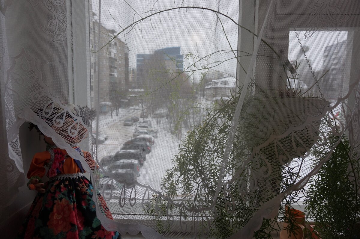 - У нас вечер, снег пролетает, за окном бело. Я тоже в кресле перед окном.