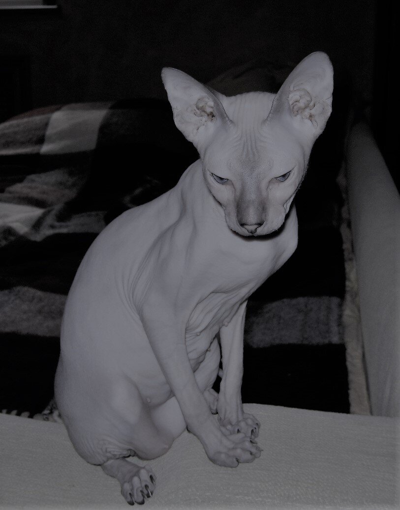Рада, лысая кошка породы «Питерский сфинкс», прожила с нами больше 14 лет. В постоянном близком контакте. Полноправный член нашей семьи! Дети рождались, а Рада всегда была рядом. Она переезжала с нами c квартиры на квартиру, летала на самолете и ездила на поезде. Все наши родственники, друзья и знакомые знали ее. Она вызывала в людях только два чувства: либо восторг, либо неприязнь. Она была навязчиво ласкова со всеми. Моя энергетическая связь с ней была очень сильной.