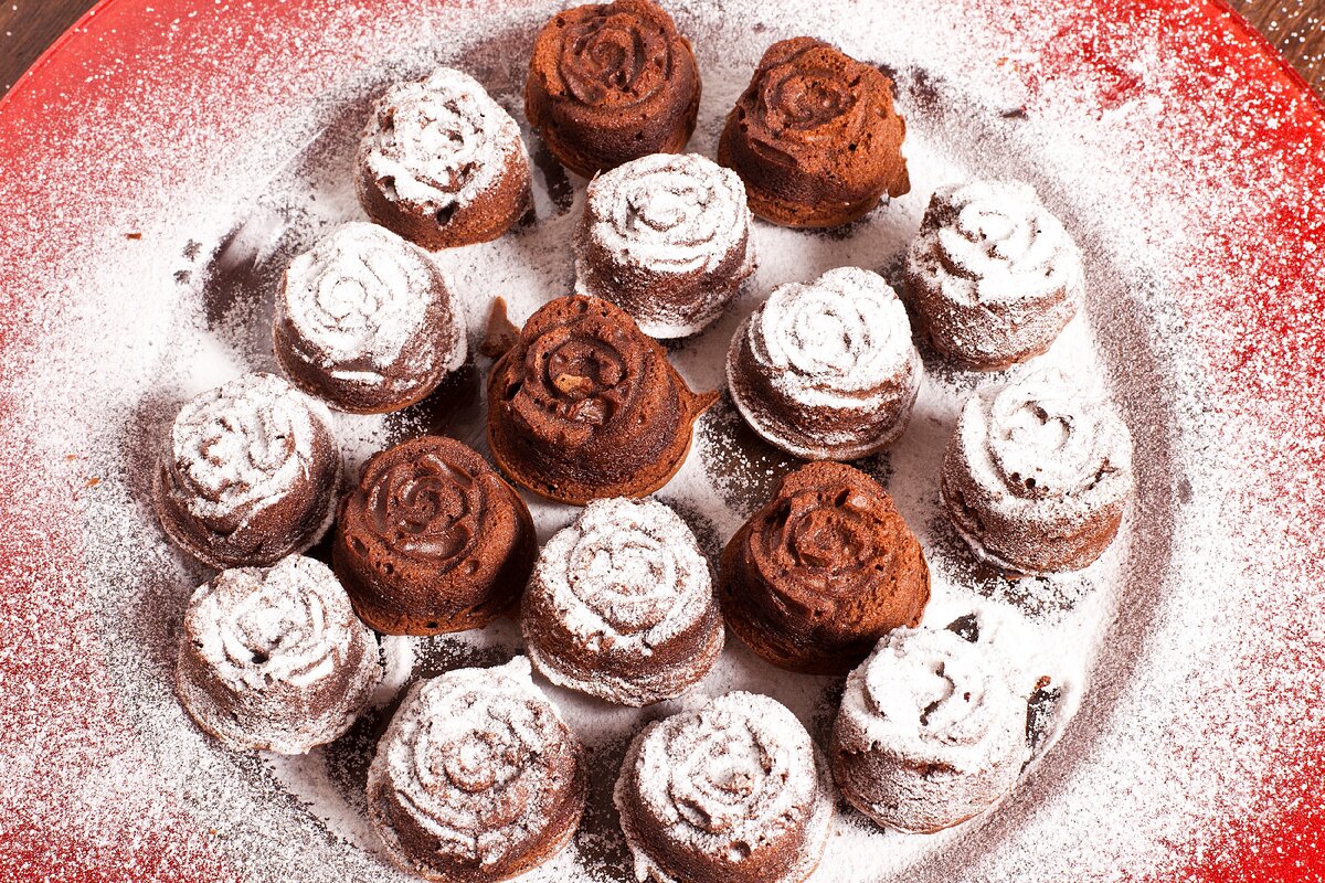 Если нет формочки в виде розочек — не беда, можно печь такие пироженки в любых порционных. Они получаются ну ооочень вкусными — с нежной кремовой текстурой, хорошего шоколадного вкуса. А делается это чудо довольно просто.