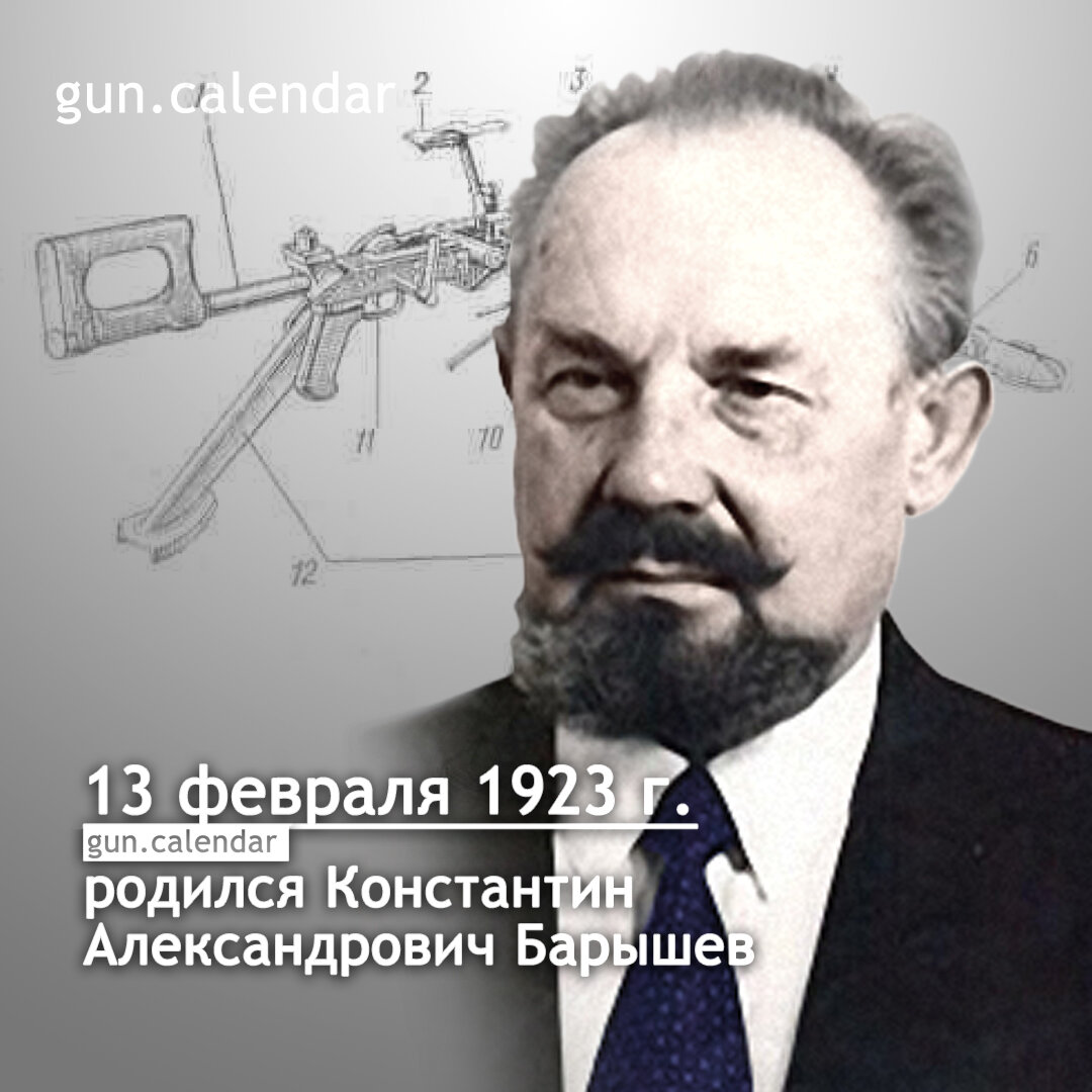 13 февраля 1923 года в селе Сосновка Тамбовской области родился Константин Александрович Барышев. После окончания средней школы, в 1940 году, поступил в МВТУ им. Н.Э. Баумана, но в мае 1942 года был призван в армию и направлен в Ленинградское Краснознаменное техническое училище, находящееся на тот момент в Томске. Позже был переведен в Артиллерийскую академию имени Ф.Э. Дзержинского на факультете вооружения по специальности стрелковое оружие, где преподавали А.А. Благонравов и В.А. Малиновский.
