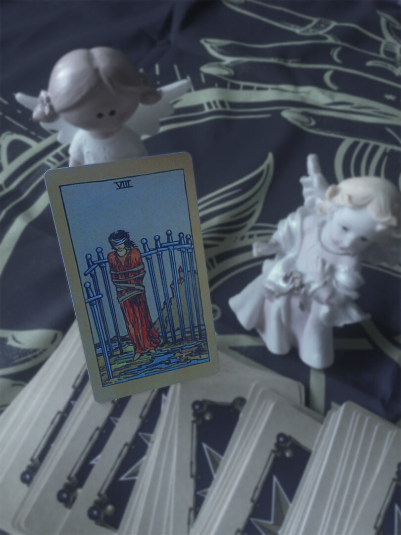 Восьмерка Мечей предполагает, что вы можете сдерживать себя, потому что боитесь двигаться в будущее, или потому, что опасаетесь получить травму из-за новой ситуации, а может быть, вообще стагнируйте без причины. Подумайте, чего вы боитесь. Правда, на самом деле ситуация, вероятно, гораздо менее пугающая, чем кажется на самом деле.