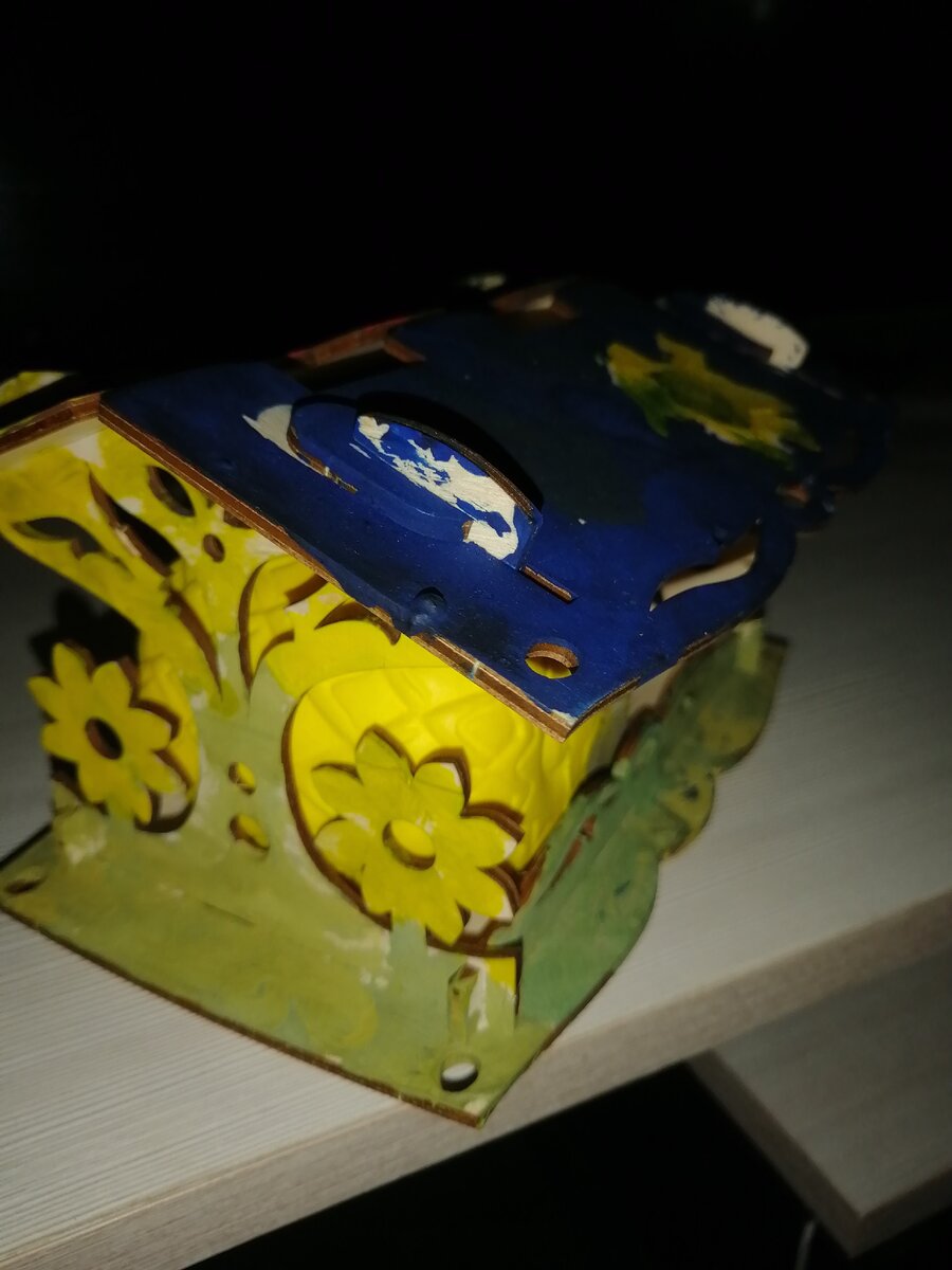 Также купили вот такую сборную кормушку, у меня вышла со скидкой около 500 рублей. Собрали даже и раскрасили. Результат на обложке статьи. Это шедевр самого юного члена нашей семьи, так что строго не судите, пожалуйста)