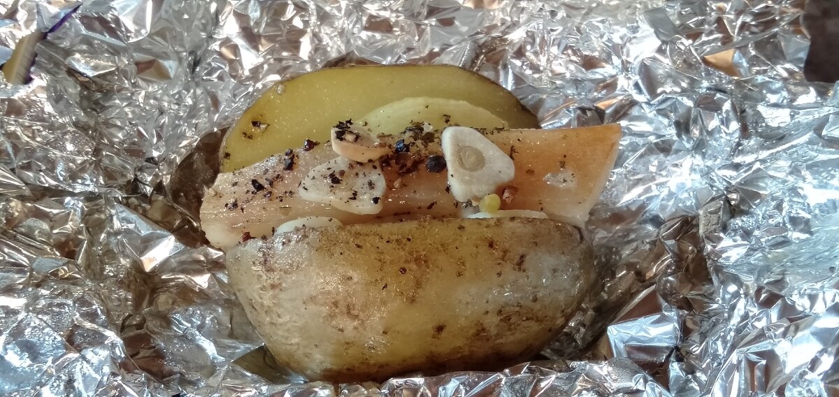 7. Картофель заворачиваем в фольгу и отправляем в духовку. Запекаем 50 минут при температуре 180-200 градусов.