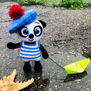 Бесплатный мастер-класс от Светланы Воронковой по вязанию панды в костюме морячка. Высота вязаной крючком игрушки примерно 23 см. Для изготовления такого медвежонка автор использовал пряжу Пехорка "Детская новинка" и крючок 2 мм. Из описания схемы вы также узнаете как связать берет и тельняшку для украшения нашей милой пандочки.