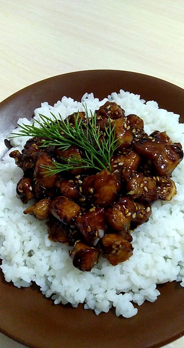 Это блюдо легко приготовить в домашних условиях. Подавать можно к любому гарниру: картошка, лапша которая у Вас имеется. Я выбрала рис. Жарить курочку можно и в обычной сковороде которая только у Вас есть.