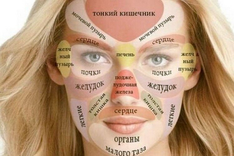 Появились прыщи в районе висков - проверьте свой желчный пузырь. Прыщи на верхней губе и щеках – ваш толстый кишечник в опасности! Угол нижней челюсти (от уха до подбородка) - проекция мочеполовой системы, а боковая часть подбородка - репродуктивных женских органов.