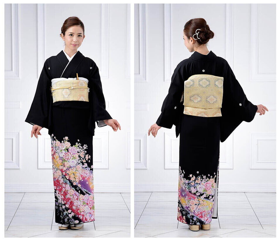 Черное кимоно с рисунком только ниже талии. Самое формальное и элегантное кимоно, которое замужние женщины носят только по торжественным случаям, например, свадьба родственника. Кимоно имеет пять узоров семейного герба, передаваемого по наследству.