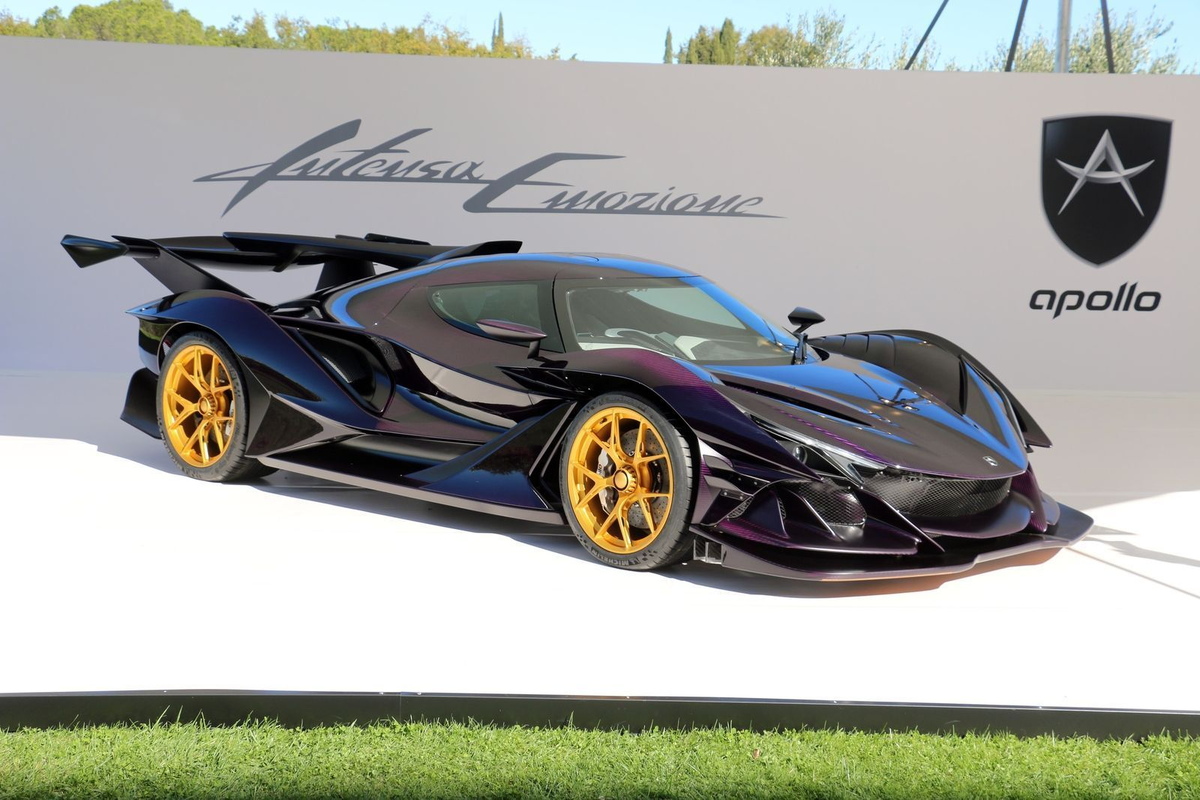 1. Знакомьтесь, это Apollo IE - гиперкар, созданный компанией Apollo Automobil. Всего их было выпущено 10 штук, каждая из которых стоит минимум 2,3 миллиона евро. За эту цены мы получаем очень красивый спортивный автомобиль, который подготовлен к трековым заездам ведь у него имеются 4 встроенных домкрата для быстрой смены колёс. А дорожный просвет регулируется от 60 до 110 мм.