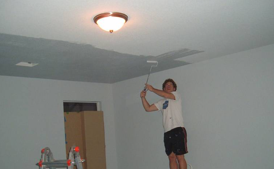 Перед тем как белить потолок, нужно провести ряд подготовительных работ. Смойте теплой водой старую побелку с потолка, используйте для этого сухую кисть. Если потолок закопчен, например, на кухне его необходимо промыть раствором соляной кислоты.