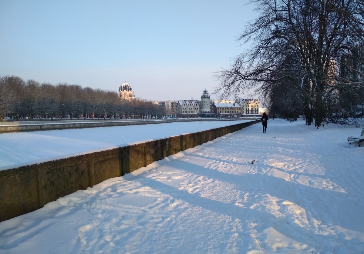 Идем, солнышко светит, снег скрипит. Срезаем путь, чтобы быстрее выйти на набережную реки. Подальше от автомобильных выхлопов и шума. Фланирующей публики действительно мало. Маринка поначалу ныла, а потом во вкус вошла.