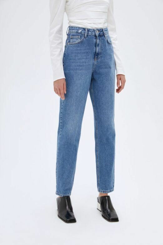 Брючины не облегают ноги, не обозначают очертания бёдер. Край этих джинс слегка широкий на бёдрах, что создаёт женственные изгибы, но за счёт этого увеличивает бёдра, а тем кому нужно их "нарисовать" хорошо подойдут.