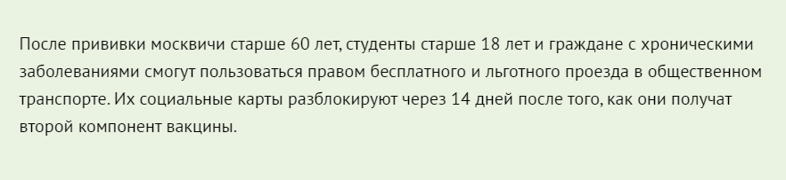 После второго укола, через 14 дней карты москвича для проезда у них разблокировали.