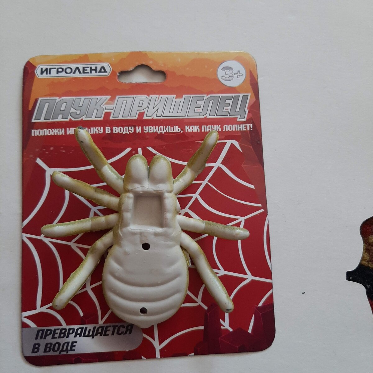 Купили в галамарте паука который должен лопнуть в воде.