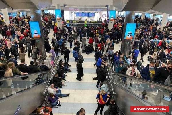 Очевидец сообщил радиостанции «Говорит Москва», что не может вылететь из столицы уже несколько часов.