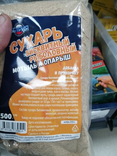 Взял себе упаковку, проверю. Но думаю сухарь испортить довольно проблематично. Вот только цена непонятная 77 рублей за 500 грамм, получается больше 150 рублей за кг, а это уже стоимость не плохой прикормки...