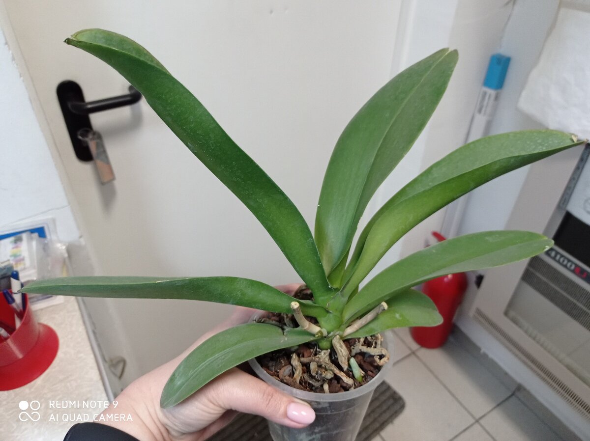 Совершенно здоровая и сильная. Единственное в чем она провинилась, это отцвела.... И её несли на помойку! В такой мороз ей не давали даже шанс на выживание, её просто никто не успел бы забрать, она бы там на контейнере и замерзла. Но на наше с орхидеей счастье мы встретились в подъезде. На вопрос "за что? ", мне ответили, что после цветения орхидеи всегда погибают и что это цветок одноразовый. Я не стала спорить и в чем-то убеждать хозяйку и с радостью забрала красотку себе! Да и как я могу спорить, если в самом начале моего знакомства с орхидеями, я сама загубила три цветка! Я и сейчас не специалист, но очень их люблю, и они меня))) (надеюсь).