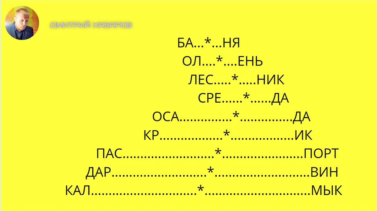 Суть упражнения проста. Ваша задача - смотреть на звездочку в середине слова, не отводя взгляд попытаться прочесть боковым зрением всё слово целиком. Чем полезно: тренирует концентрацию, периферийное зрение, внимание.Создаёт новые нейронные связи за счет попытки угадать слово.