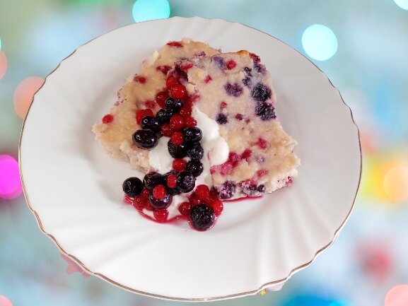 - Подавайте со сметаной и свежими ягодами.